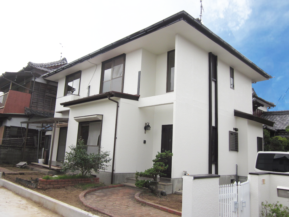 鮮やかな赤と白にコントラスト、神社塗装です。