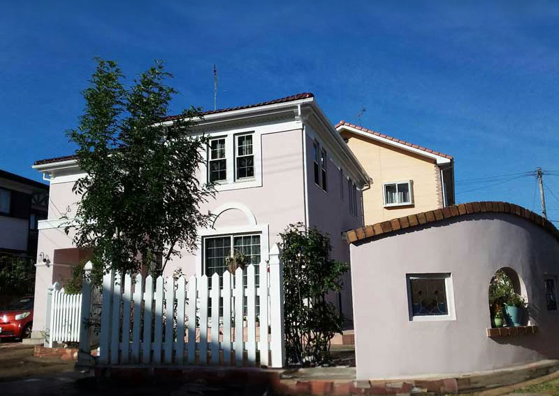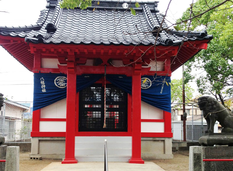 鮮やかな赤と白にコントラスト、神社塗装です。