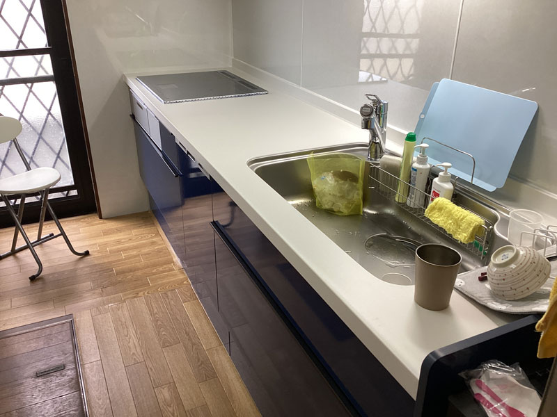 収納量の多いシステムキッチンへの交換で、見た目もすっきり使いやすくなりました。